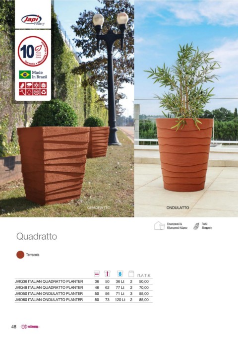 JVIQ48 ITALIAN QUADRATTO PLANTER 46 62 77 Lt 2 70,00 JVER50 EUROPEAN ROUND PLANTER 52 42 53 Lt 2 45,00