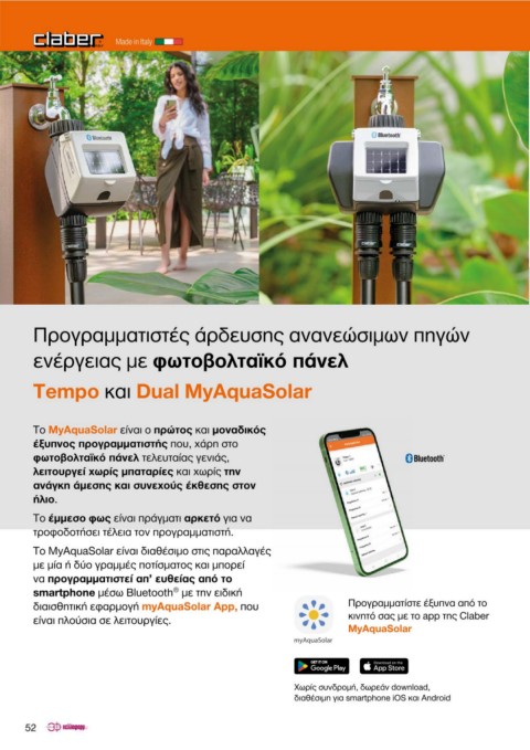 και app Claber myAquaSolar. • Εύκολος προγραμματισμός μέσω τεχνολογίας Bluetooth®