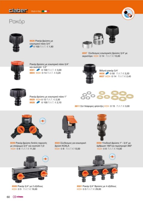 8589 Ρακόρ 3/4'' με 2 εξόδους 8581 Ρακόρ 3/4'' Βρύσης με 4 εξόδους 9025 Ταχυσύνδεσμος για σπιράλ 15 Π.Λ.Τ.€ 3,00