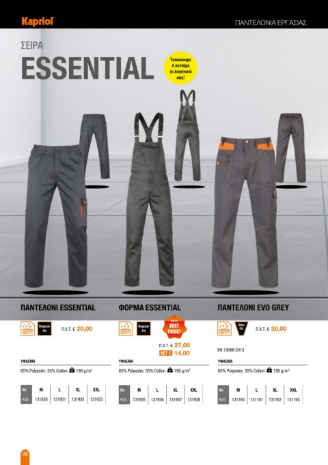 KΩΔ. 131930 131931 131932 131933 KΩΔ. 131935 131936 131937 131938 KΩΔ. 131160 131161 131162 131163 60% Polyester, 40% Cotton 280 g/m 2 65% Polyester, 35% Cotton 190 g/m 2