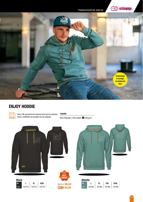 άνεση, κατάλληλο για εργασία και για αναψυχή. 65% Polyester / 35% Cotton 340 g/m 2